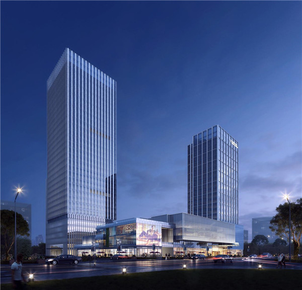 项目集办公、酒店和商业一体,由两层满堂地下室和地上四栋单体组成。包括地下室两层,面积4.04万平米;地上部分总建筑面积10.1万平米,其中1#楼为高146米的32层高层写字楼,建筑面积6.26万平米;2#楼为高93米的20层酒店,建筑面积3.25万平米;3#、4#楼为两栋3层楼独立商业,建筑面积各约3000平米。项目采用集中供能并按绿色建筑二星标准建设。项目建成后将进一步改善新区的城市面貌,丰富儒乐湖新城现代服务业的城市功能,增进新区产业发展升级。